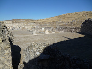 Pero aún nos quedan cosas por ver. Nos dirigimos extramuros, a la zona que estuvo ocupada por el Circo, para las carreras de cuádrigas, del que hoy es difícil distinguir prácticamente nada (os remito de nuevo a las fotos aéreas del enlace que os comentaba). Este edificio se edificó encima de una necrópolis, según las excavaciones de los s I-II d. C, donde se ha documentado el rito de incineración, y se han localizado nuemerosas estelas en torno a una vía funeraria, situada en una vaguada del terreno.